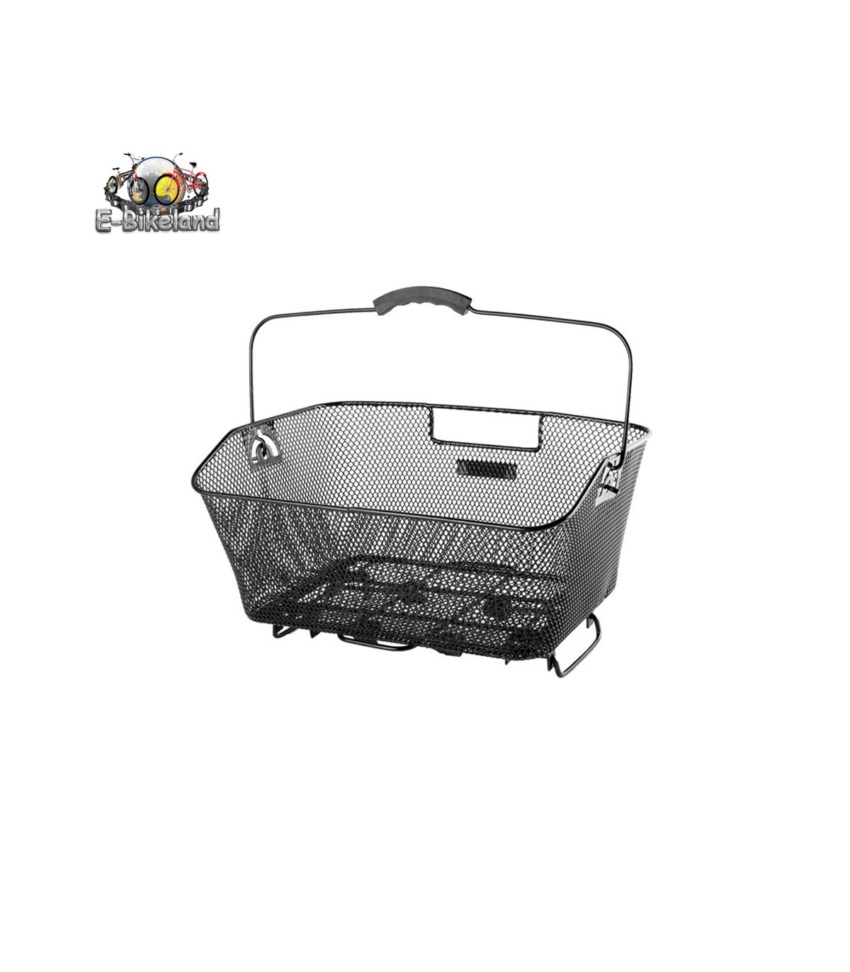 Εξαιρετικής ποιότητας οπίσθιο καλάθι ποδηλάτου με βάσεις στήριξης στην σχάρα. Εξοπλισμένο με εργονομικό πλαστικό χερούλι για εύκολη μεταφορά.
