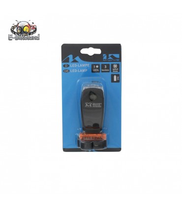 Εμπρόσθιο φανάρι ποδηλάτου με 5 λευκά Super Leds, 3 λειτουργίες και μεγάλη διάρκεια ζωής. Εξοπλισμένο με clip για εύκολη τοποθέτηση σε τιμόνια με διάμετρο από 22.2 έως 31.8 mm. Επιπλέον μπορεί να χρησιμοποιηθεί και σαν μινι φακός χειρός. Οι μπαταρίες συμπεριλαμβάνονται.